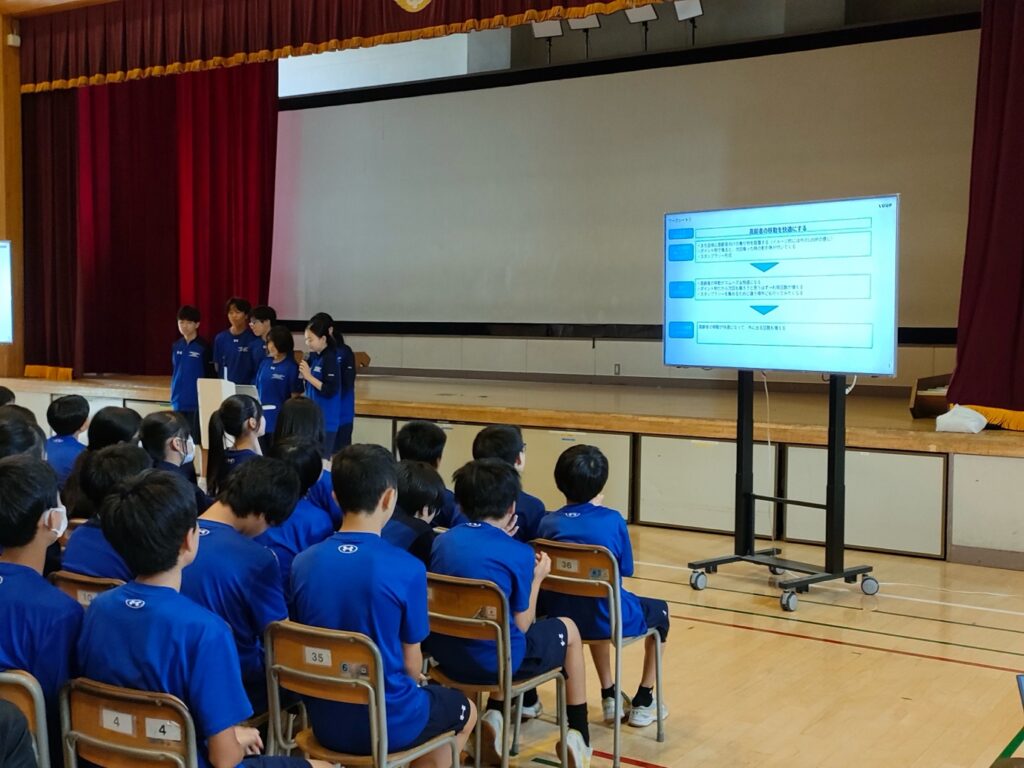 また、発表の時間は3時間目と4時間目にとったのですが、3時間目には各クラスごとにグループの発表を行いました。その中で、クラスを代表する班を選ぶために、全員で投票を行いました。投票の際には、「発表の工夫」「チームワーク」「聞きやすさ」といった観点を審査基準として、総合的に評価をしました。